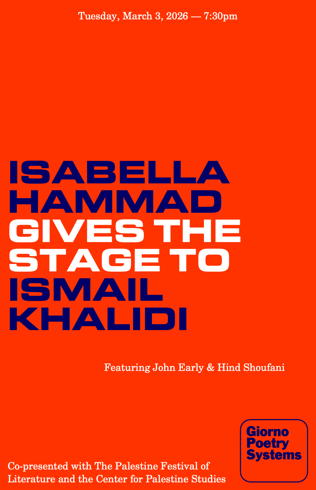 Isabella Hammad *gives the stage to* Ismail Khalidi