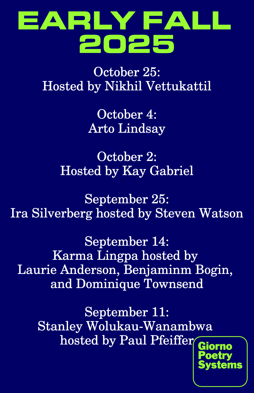 Dial-A-Poem USA *launches with readings by* Courtney Bush, Ian Dreiblatt, Stephon Lawrence, and Patricia Spears Jones