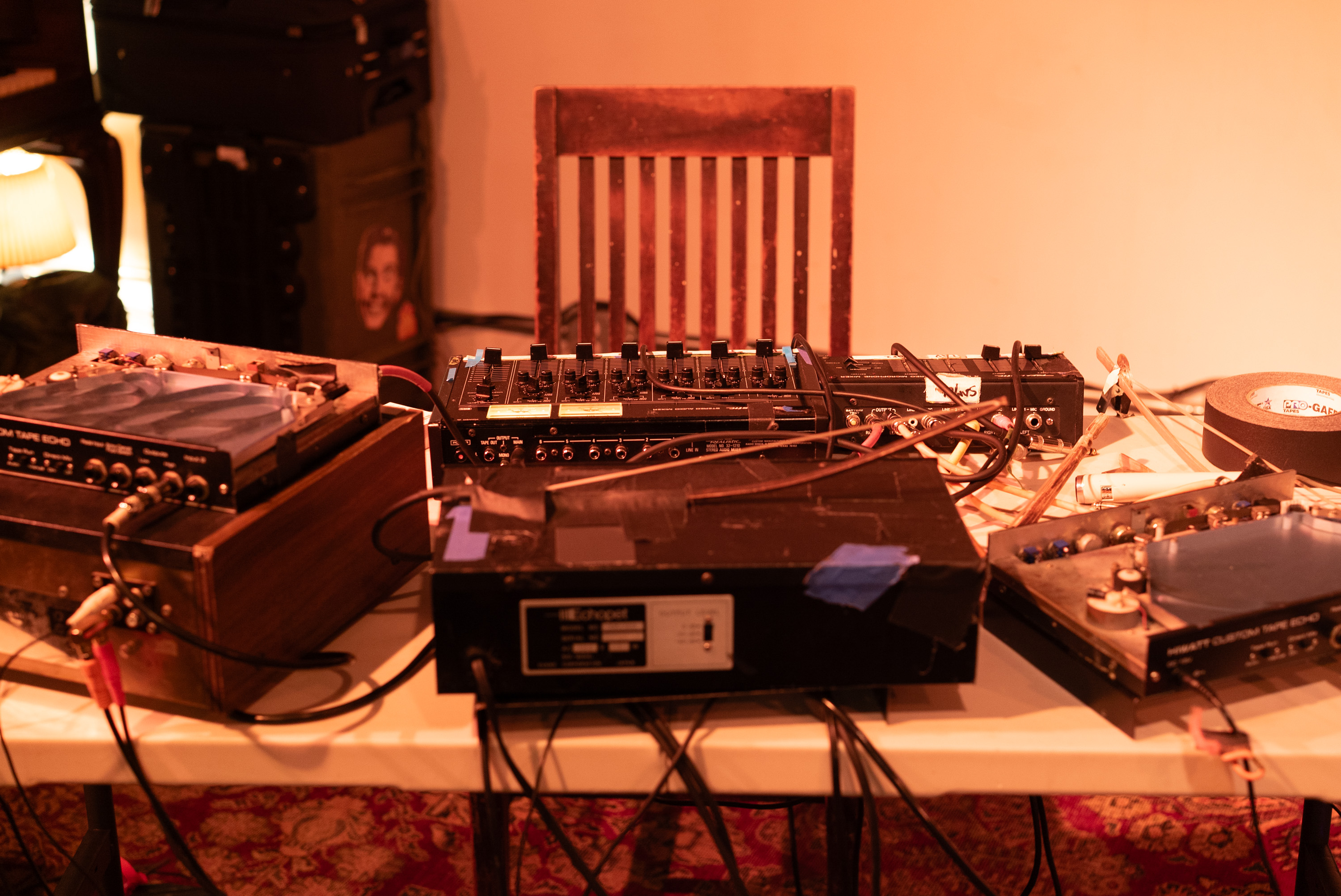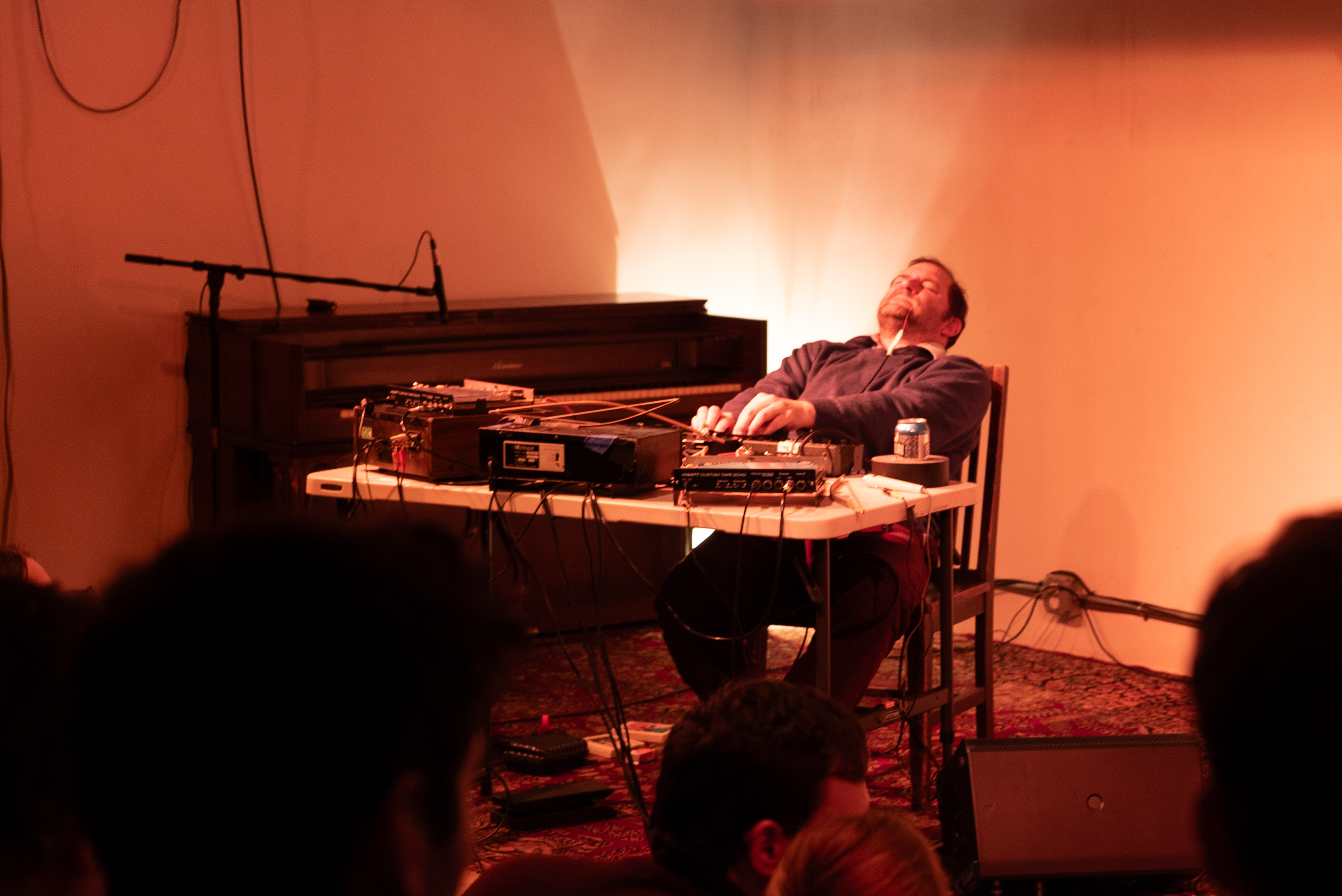 Aaron Dilloway (b. 1976, Michigan) is a celebrated improviser and composer who works with 1/4" tape loops in 8-track cartridges as well as other discarded electronic equipment. In his performance-based practice, he manipulates magnetic tape in real-time by feeding the loops sounds from his body, everyday objects, electronic sources, prepared tapes, as well as the occasional actual instrument.