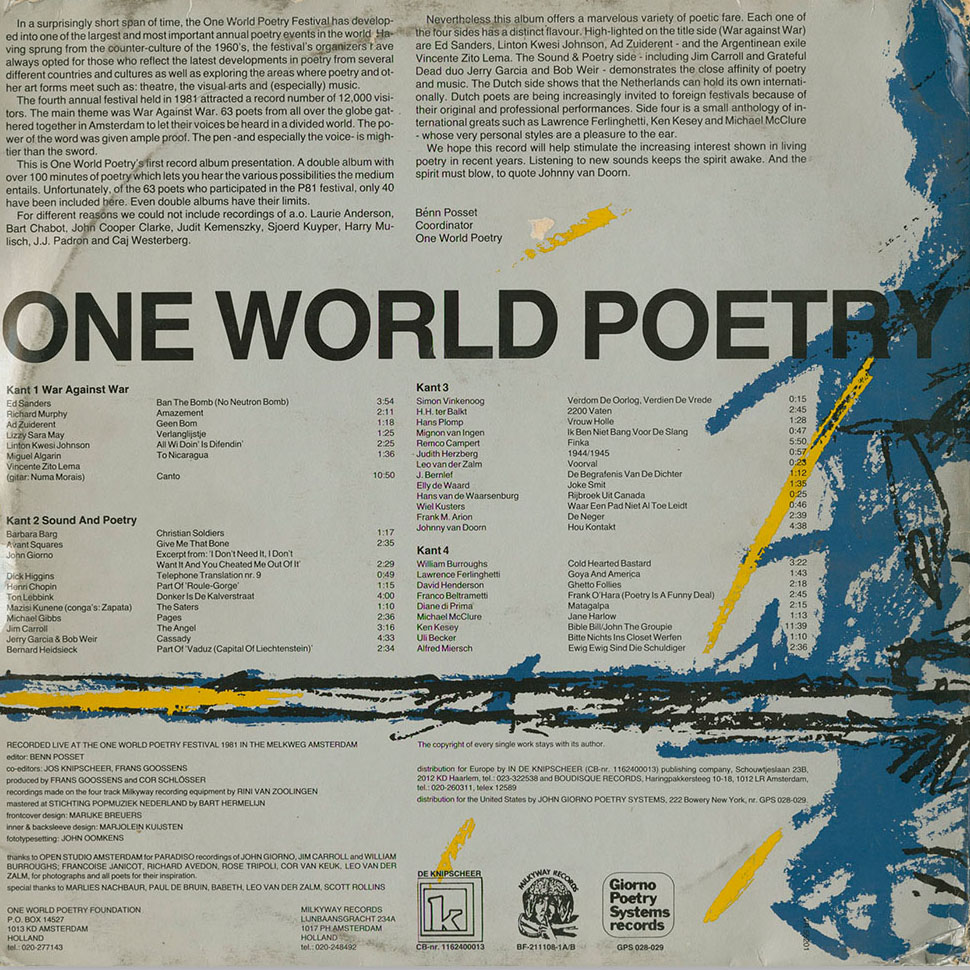 B3 - John Giorno: Excerpt from “I Don't Need It, I Don't Want It And You Cheated Me Out Of It”