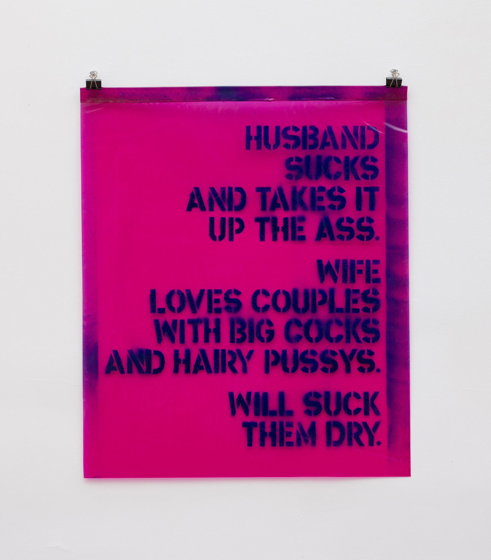 Window Curtain Poem: Will Suck Them Dry, 1969. Spraypaint on vinyl